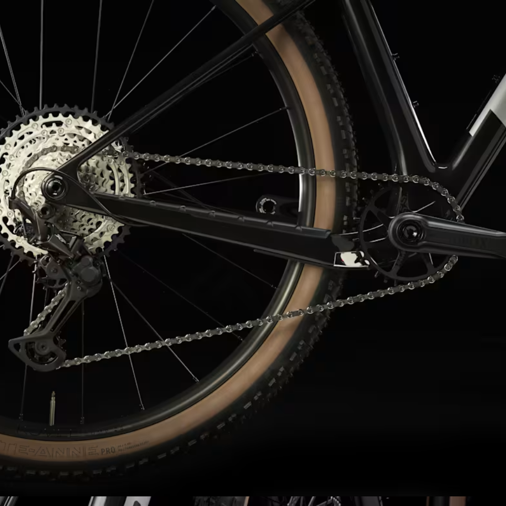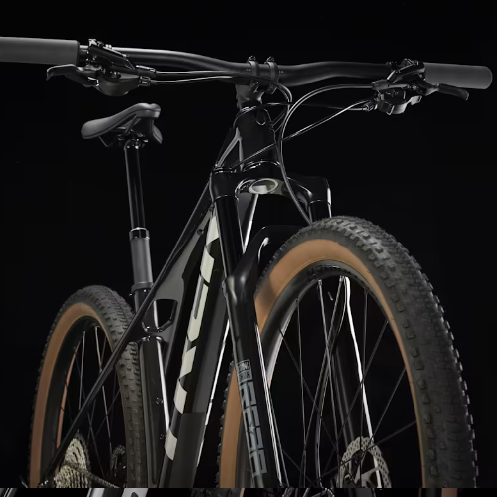 En ram i OCLV Mountain Carbon med utjämnande IsoBow-teknik. En RockShox Reba RL-gaffel med 120 mm slaglängd, Solo Air-fjäder, Motion Control-dämpare och Remote Lockout. En noga utvald kombination av SLX- och XT-komponenter från Shimano med 12 växlar, hydrauliska bromsar, Bontrager Line Dropper-sadelstolpe och Bontrager Kovee Comp 29-tumshjul för slanglös konfigurering.